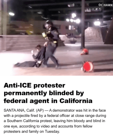 ICE shoots 21-yr. old protester in the face, permanently blinding him