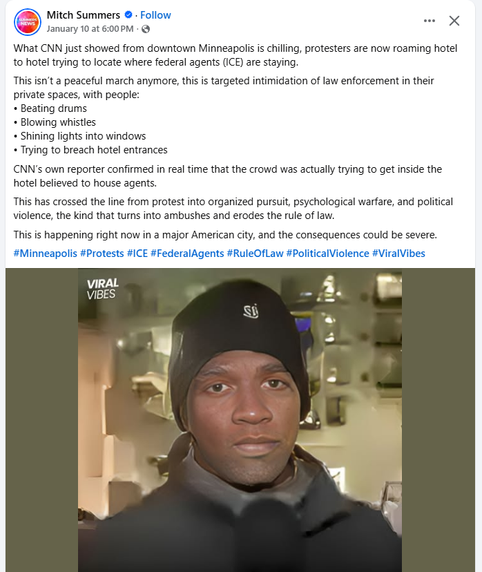What CNN just showed from downtown Minneapolis is chilling, protesters are now roaming hotel to hotel trying to locate where federal agents (ICE) are staying.